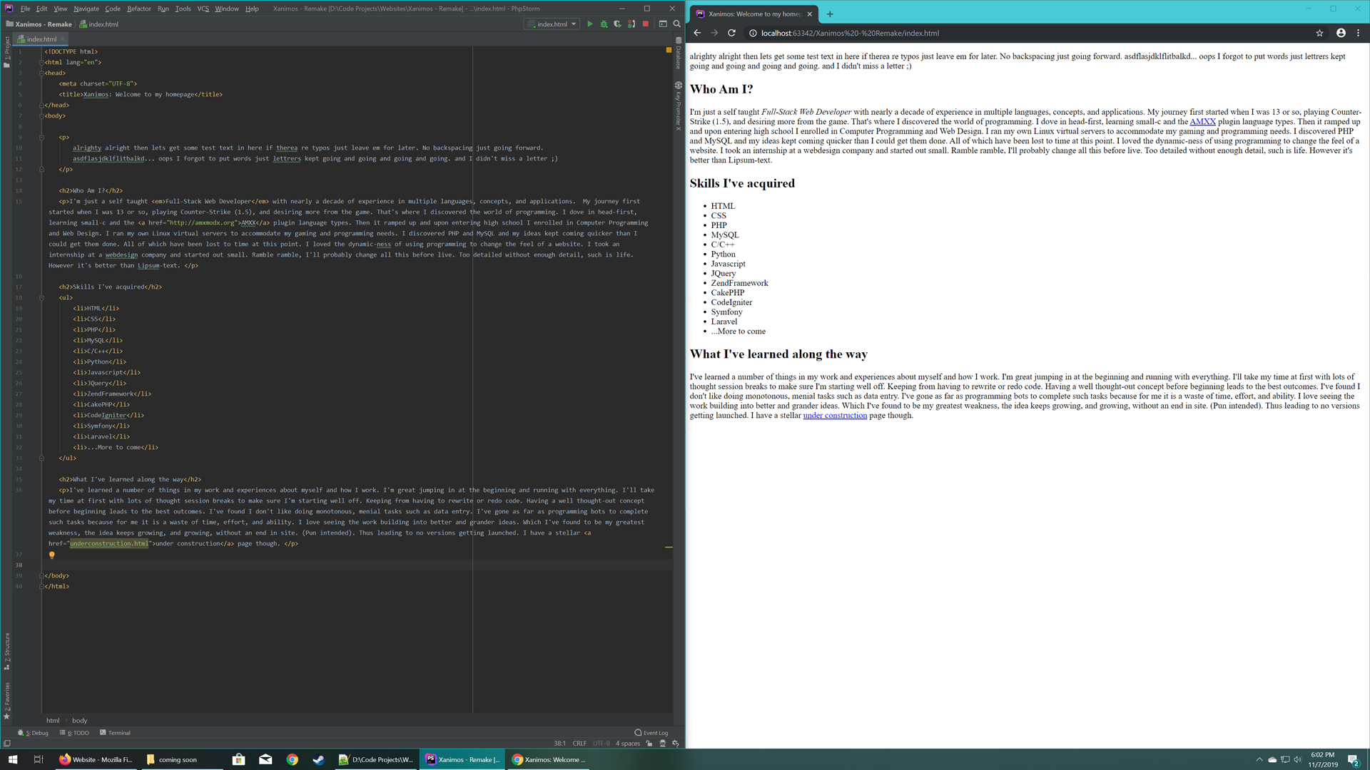 I've learned a number of things in my work and experiences about myself and how I work. I'm great jumping in at the beginning and running with everything. I'll take my time at first with lots of thought session breaks to make sure I'm starting off on the right foot. Which keeps me from having to rewrite or redo code. Having a well thought-out concept before beginning leads to the best outcomes. I've found I don't like doing monotonous, menial tasks such as data entry. I've gone as far as programming bots to complete such tasks because for me it is a waste of time, effort, and ability. I love seeing the work building into better and grander ideas. Which I've found to be my greatest weakness, the idea keeps growing, and growing, without an end in site. (Pun intended). Thus leading to no versions getting launched. I have a stellar under construction page though. This is been in my personal projects though. Customer projects and business projects get completed because they have a defined finish. I tend to build as a means to learning and growing as an individual.